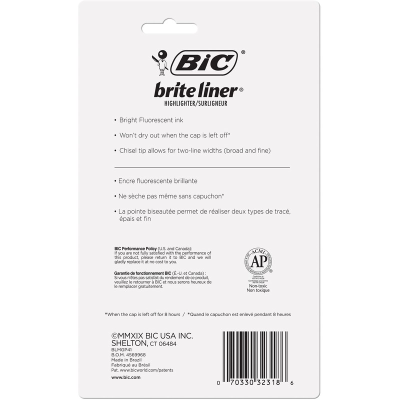 BIC Brite Liner Highlighter with Rubber Grip, Chisel Tip, Assorted, Pack of 4 - BLMGP41-A-AST