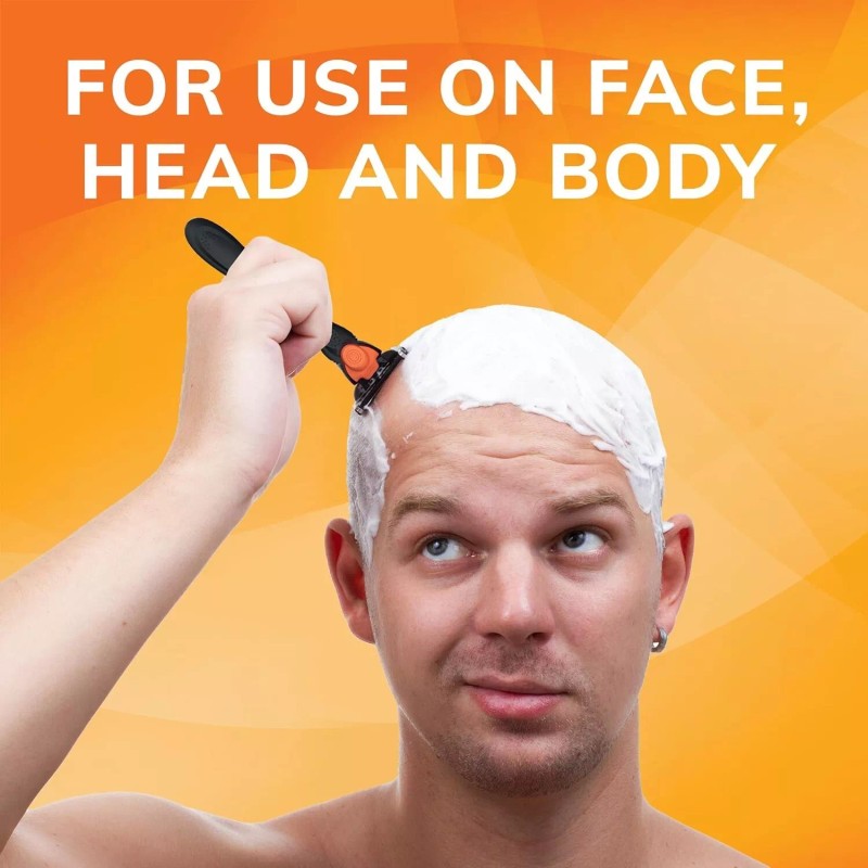- Men's refillable razor for face, head and body use with enhanced lubricating strip for extra glide over your skin