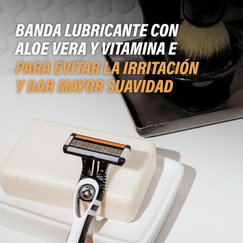 - DOBLE BANDA LUBRICANTE. Enriquecida con aloe vera y vitamina e, ayuda a prevenir irritaciones y permite un mejor deslizamiento.