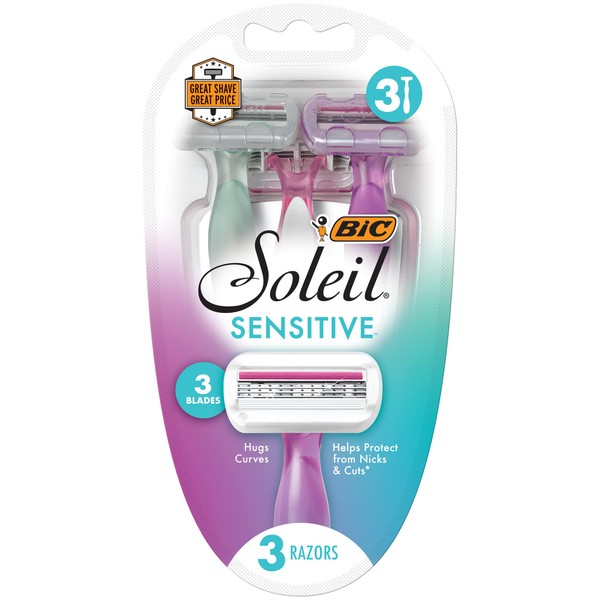 BIC Soleil Sensitive Women's Disposable Razor, Triple Blade, Count of 3 Razors, With Aloe Vera for a Smooth Shave
