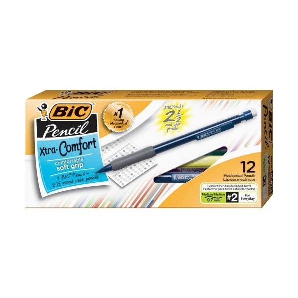 Comfortable rubber grip provides comfort and control during extensive writing. Three full-length leads allow you to write longer than an ordinary woodcase pencil. Bright, colorful barrel adds fun to everyday writing. Rubber grip. Three full-length leads. Colorful barrel. BIC Mechanical Pencils are certified by Scantron.