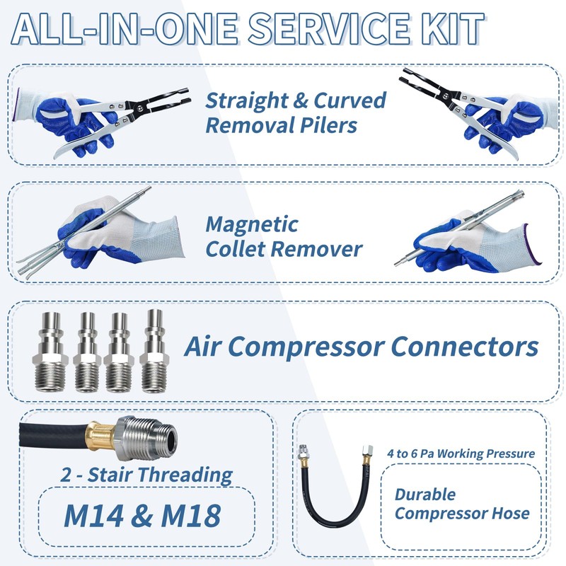 • 【Precise and Damage-Free Seal Removal】 This tool allows for the safe removal of stem oil seals without damaging the springs. The precision-machined seal driving adapters ensure proper placement and a secure fit during the installation process.