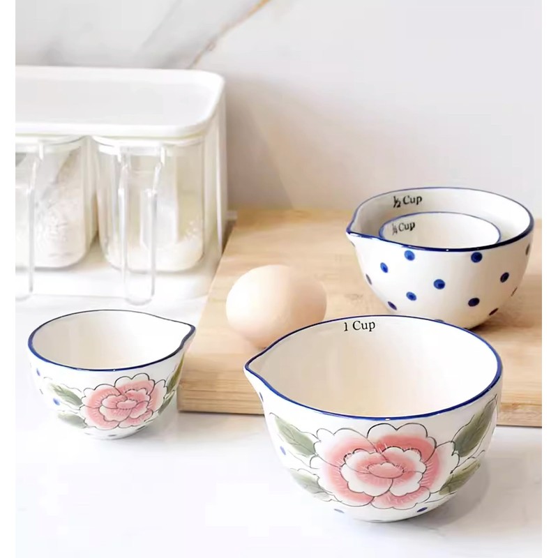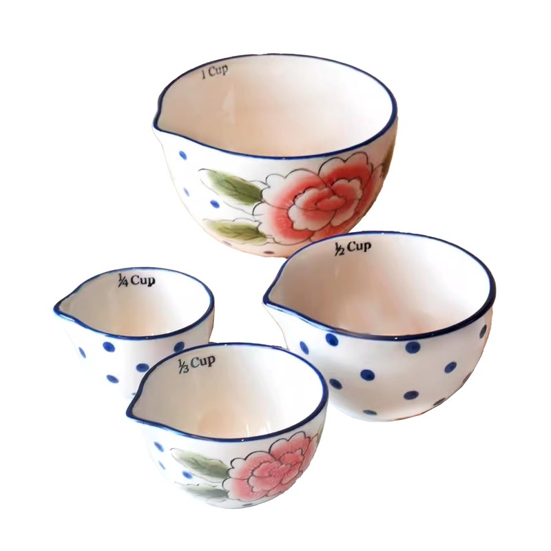 Bicuzat Ceramic Flower Pattern Measuring Cups Set, Measuring Bowls Set, Measuring Cups for Liquid/Dry Ingredients, 1 Cup, 1/2 Cup, 1/3 Cup and 1/4 Cup