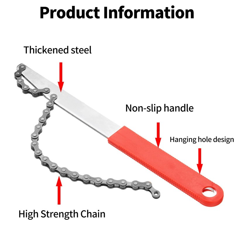 - Practical design for different: the cassette key features a thoughtful design that allows it to use two different key sizes. This increases the flexibility and compatibility of the tool with different cassette and rotor sizes. When removing the flywheel, it is important to fix the wheel to avoid damage. Our chain whip are designed to ensure safe use and help minimize the risk of damage to your bike or tools