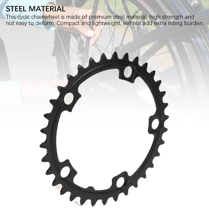 - STEEL MATERIAL: This bicycle chain wheel is made of high quality steel material, high strength and not easy to deform. Compact and lightweight, does not add extra driving load.