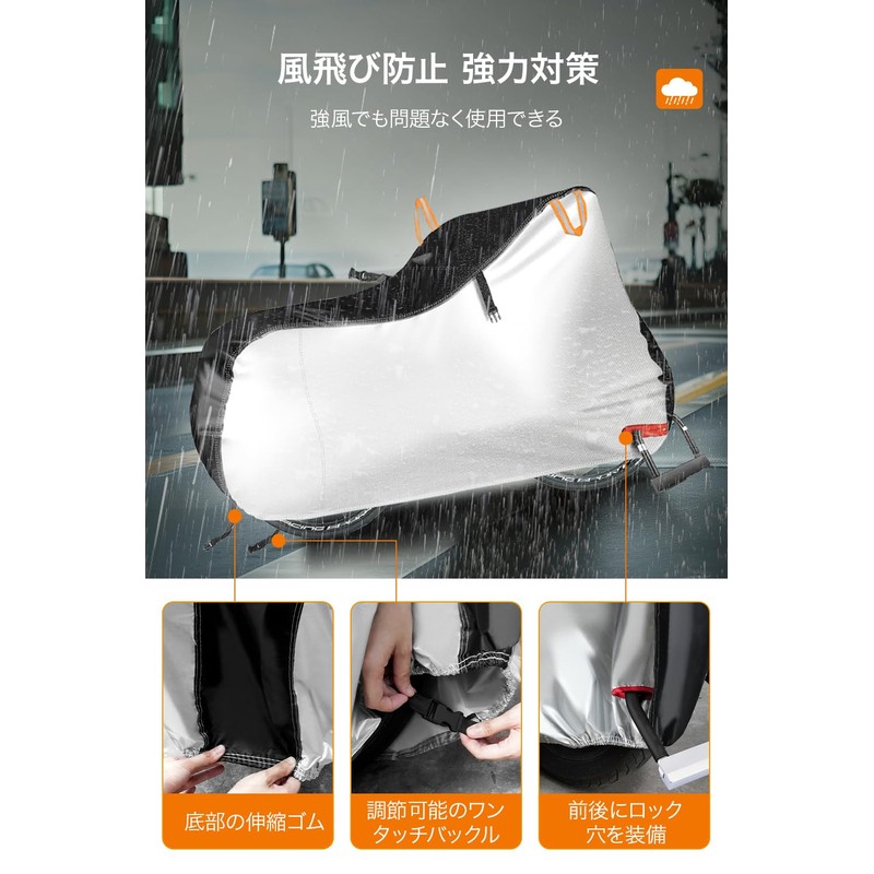 - Windproof Cycle Cover: The front and back bottom of the front and back have elastic rubber for easy on and off. In addition, the front features an adjustable windproof buckle to prevent it from sliding in the wind. You can use it with peace of mind even if the typhoons comes