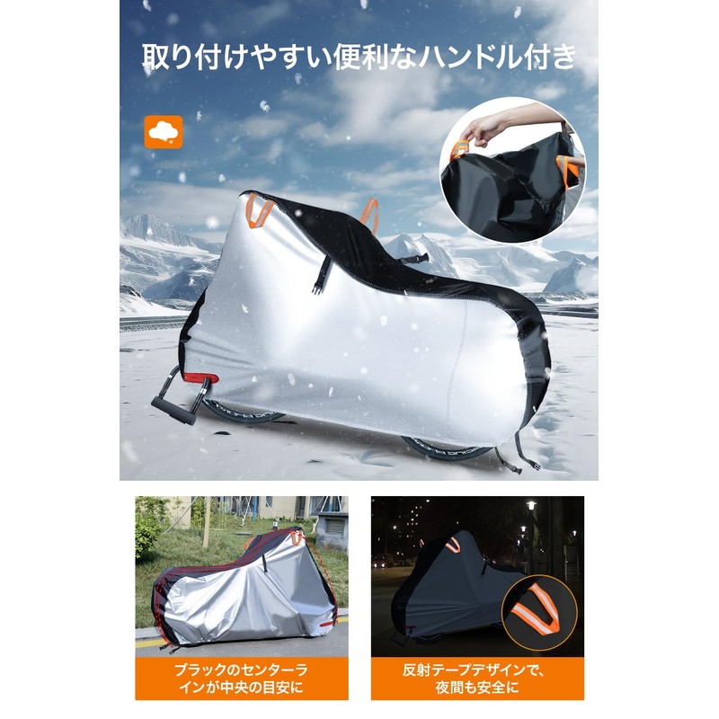 - (One-piece design with easy-to-handle and reflective tape) Both sides of the cover are equipped with easy-to-remove handles and are designed with reflective tape for safety at night. The top of the cover has a buckle which is convenient for hanging and drying the wet cover. Allow them to dry completely and then put them in a storage bag to extend the life of the cover