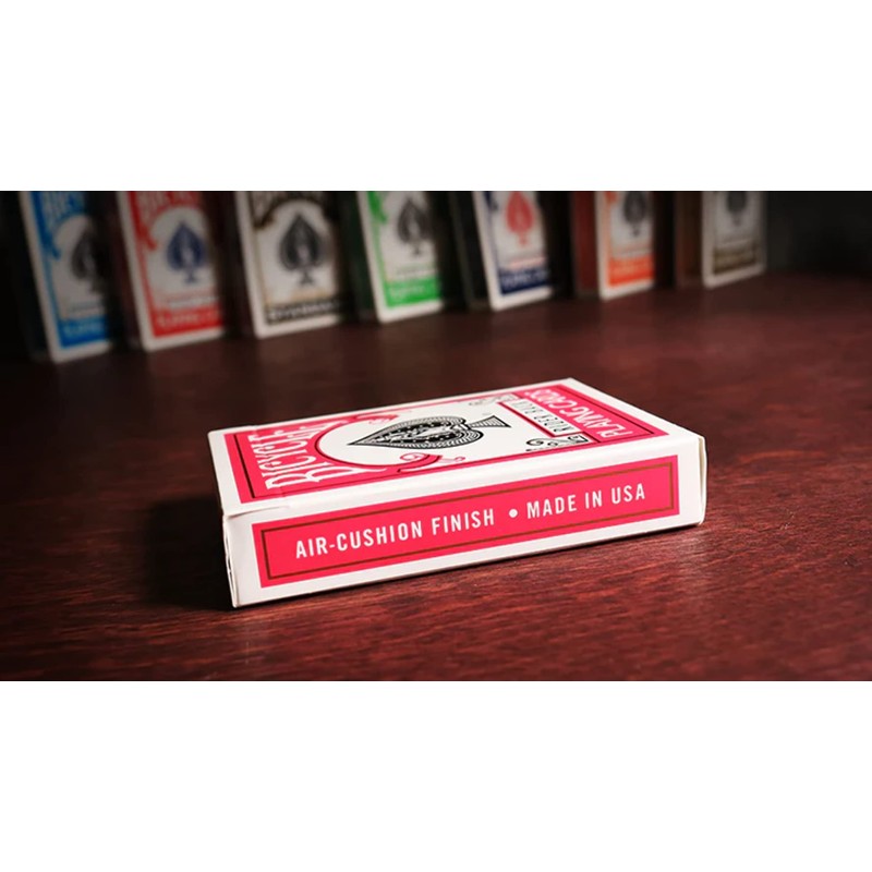 This is the world's most familiar and popular cards. The famous Rider Back design in fuchsia. We have all probably played with this card and know that it is a very solid and reliable card. More people use this card than any other in the world. It is made by the US Playing Card Company and this card is plastic coated to ensure a long life. A favorite of card players and magicians for over 100 years, Bicycle playing cards have long been known as the gold standard.