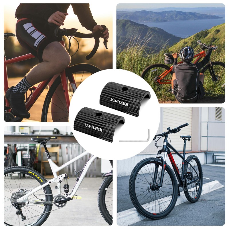 - Compatible dimensions for conversion of handlebars and stem. This set contains two handlebar adapters for connecting diameter 25.4 mm bicycle handlebars with a stem diameter 31.8 mm. The spacer bicycle is ideal for conversion or replacement on MTB, road bike or trekking bike. The bicycle handlebar shim spacer 25.4 to 31.8 mm fits in many common systems.