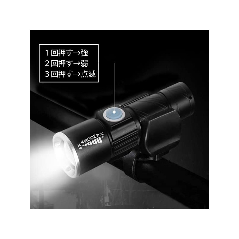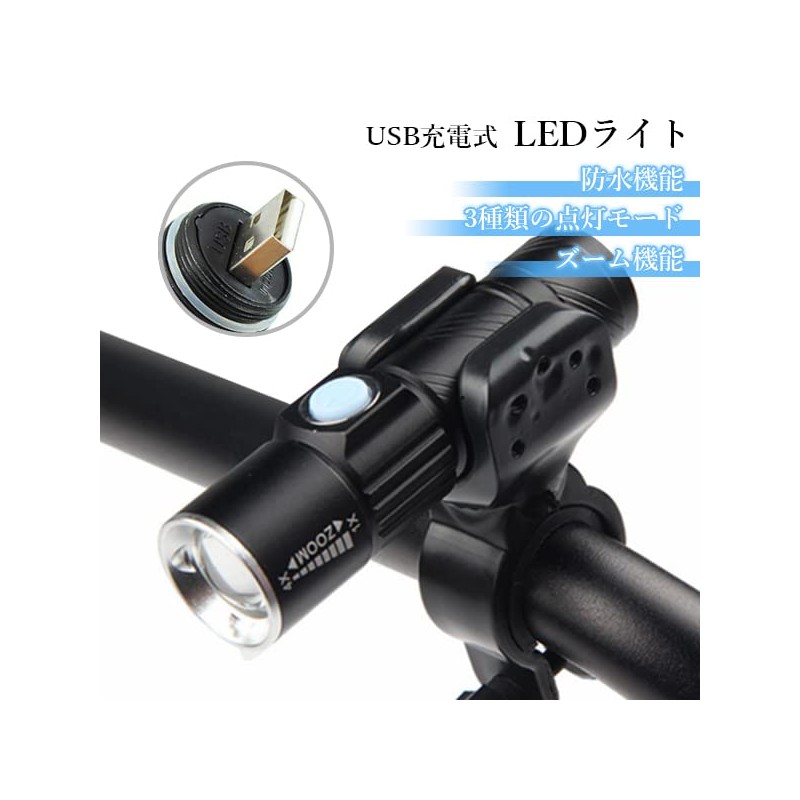 Bicycle Light, LED Light, USB Rechargeable, Bright, Flashlight, Compact, Hand Light, Black