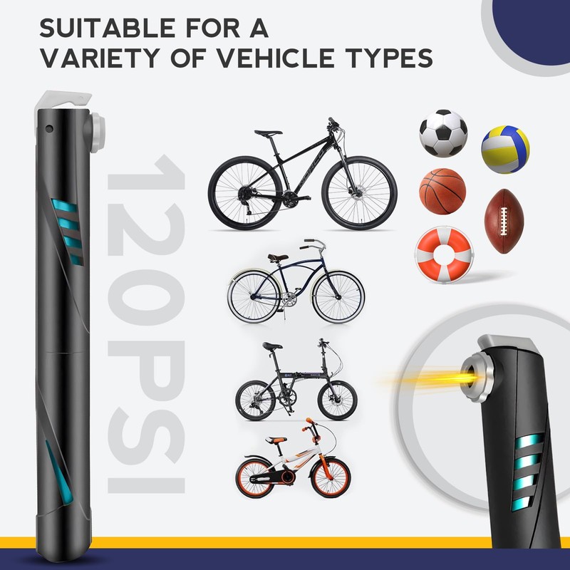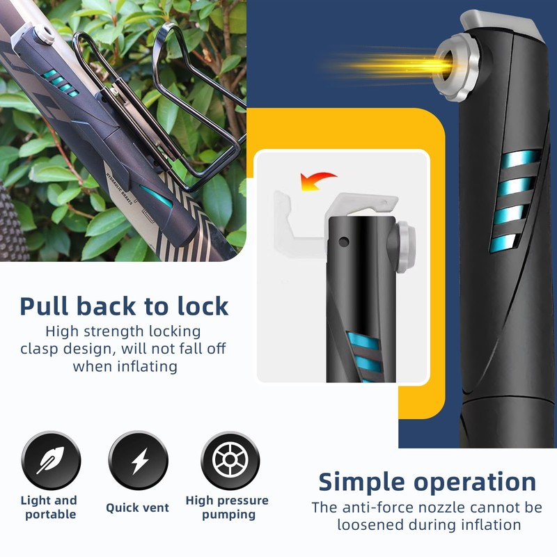 - COMPACT & LIGHTWEIGHT This mini bike pump is designed to be portable and easy to install on the bike, allowing you to carry it comfortably and have quick access to it while riding.