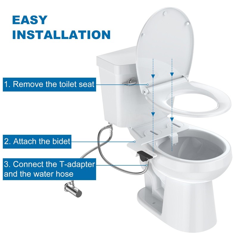 - Easy Installation: Fits Most Toilets in Minutes, Our Bidet Attachments are designed for easy, at-home installation. Most models attach to standard toilets with simple brackets—no drilling, no messy pipes. Even first-time users can have it up and running in under 15 minutes. The compact design won’t take up extra space, so it works in small bathrooms or apartments too. Finally, a hygiene upgrade that doesn’t come with stress—just quick, easy setup and use.