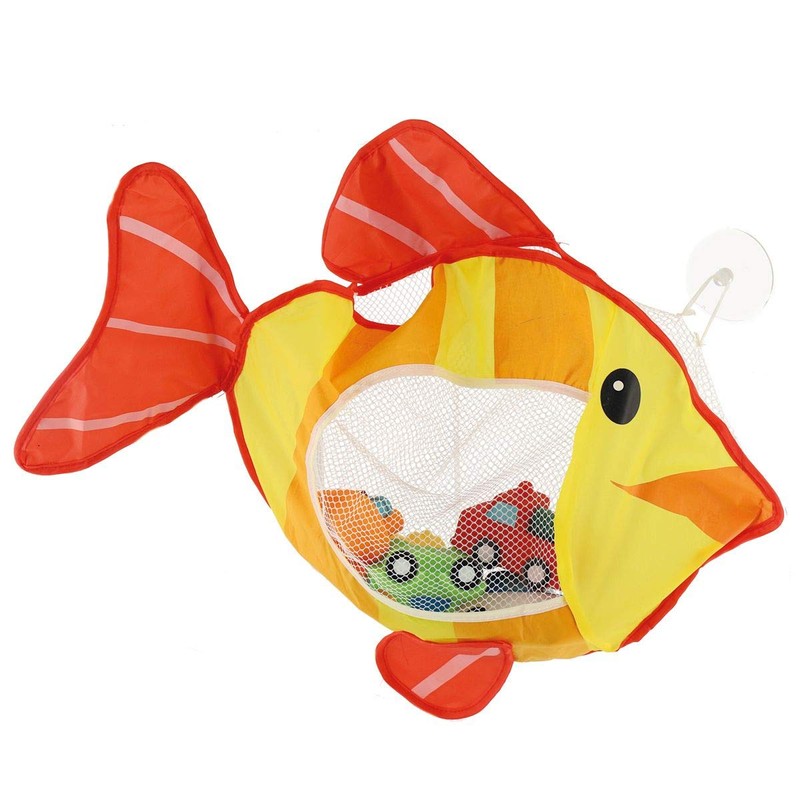 - The bath net from Bieco is a clever storage of bath toys and bath accessories: the large mesh bag in the shape of a fun, colourful fish brings order to the bathroom