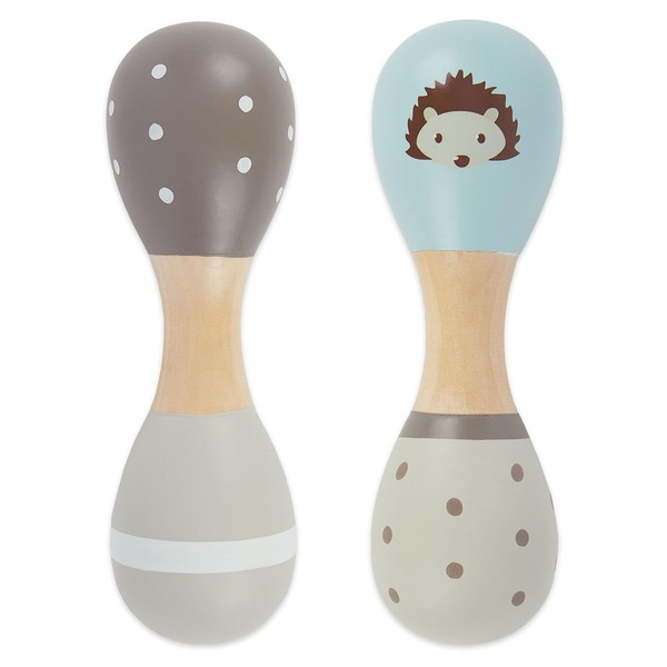 Bieco Baby Rattle Wooden Hedgehog | Dumbbell Rattle | Set of 2 | 19 cm | Children's Rattle Musical Instrument | Wooden Rattle Baby Montessori Rattle Children from 1 Year Rattle Baby 0-6 Months Rattle