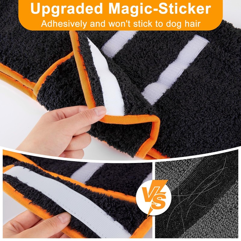 - Adjustable: Our dog towels are made of magic-sticker,it will not easy to stick dog hair, besides the sticker can make it easier for dogs to put on and take off the pet bathrobe, adjust the tightness, and make the dog bath towel more fit and comfortable