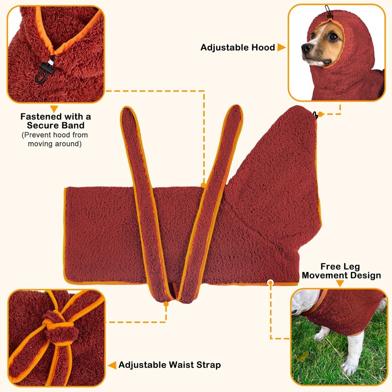 - Cute Hood Design: Our dog robe features a stylish hood that adds extra cuteness and keeps your pet warmer, with an adjustable elastic band to securely fit around dog's face without obstructing their eyes, also can be fastened with a secure buckle at the back to prevent it from moving around