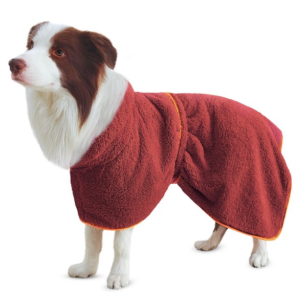 Bienbee Soft Dog Bathrobe,Super Absorbent & Quick-Drying Dog Robe with Hood, Cozy Drying Coat for After Bath, Red XL