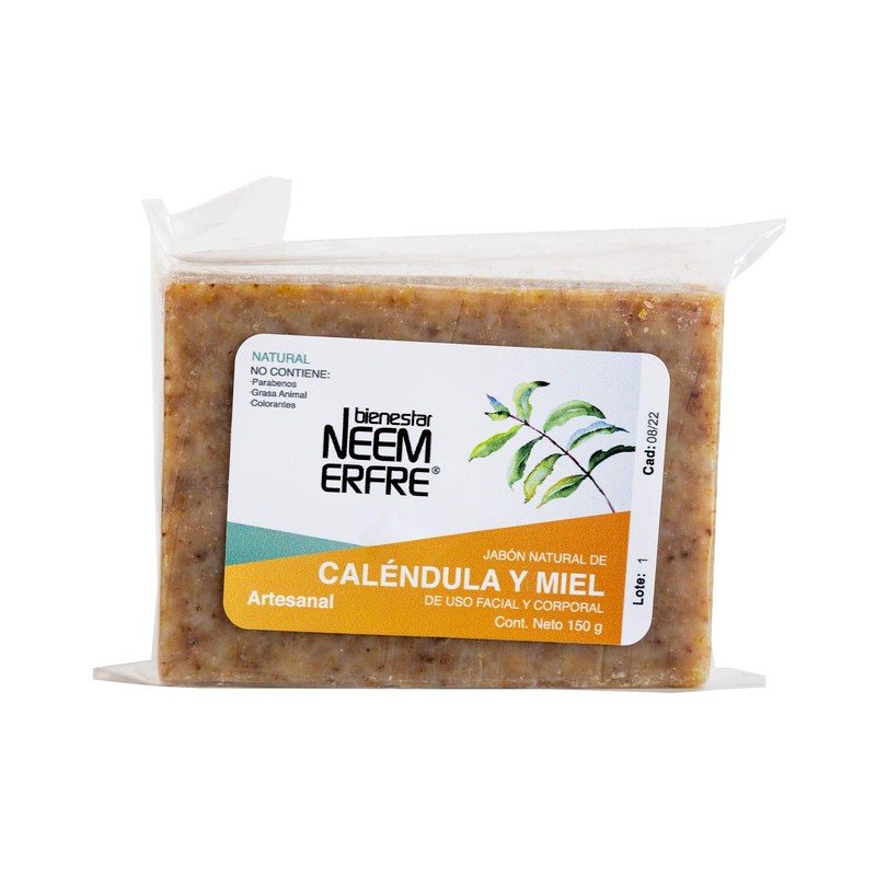 bienestar NEEM ERFRE Jabón Natural Artesanal Calendula y Miel con Aceite Neem Oliva Tea Tree -Sin Parabenos Petrolatos Grasa Animal-150 g c/u - 5.29 oz each (Paq- de 3)