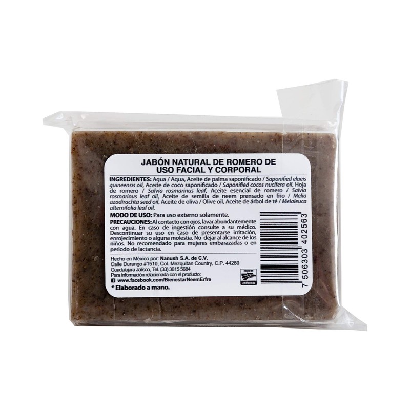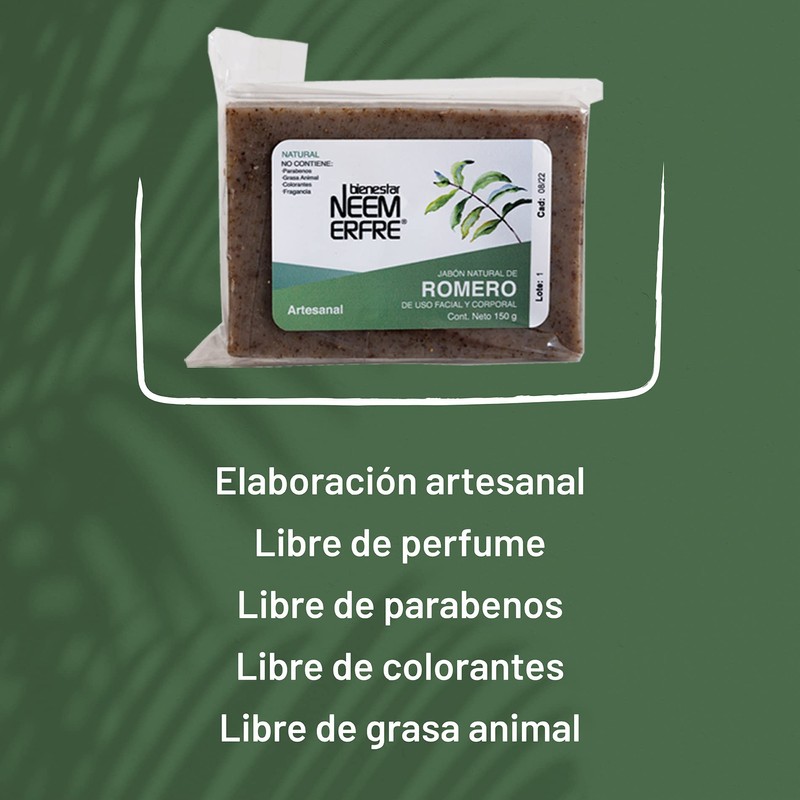 bienestar NEEM ERFRE Jabón Natural Artesanal Romero con Aceite Neem Oliva Tea Tree -Sin Parabenos Petrolatos Grasa Animal-150 g c/u - 5.29 oz each (Individual)