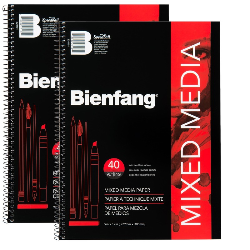 Bienfang Mixed Media Pad, 9x12 Inches (2-Pack) 40-Sheets Artist Paper, Spiral-Bound Sketchbook, 90lb,146gsm