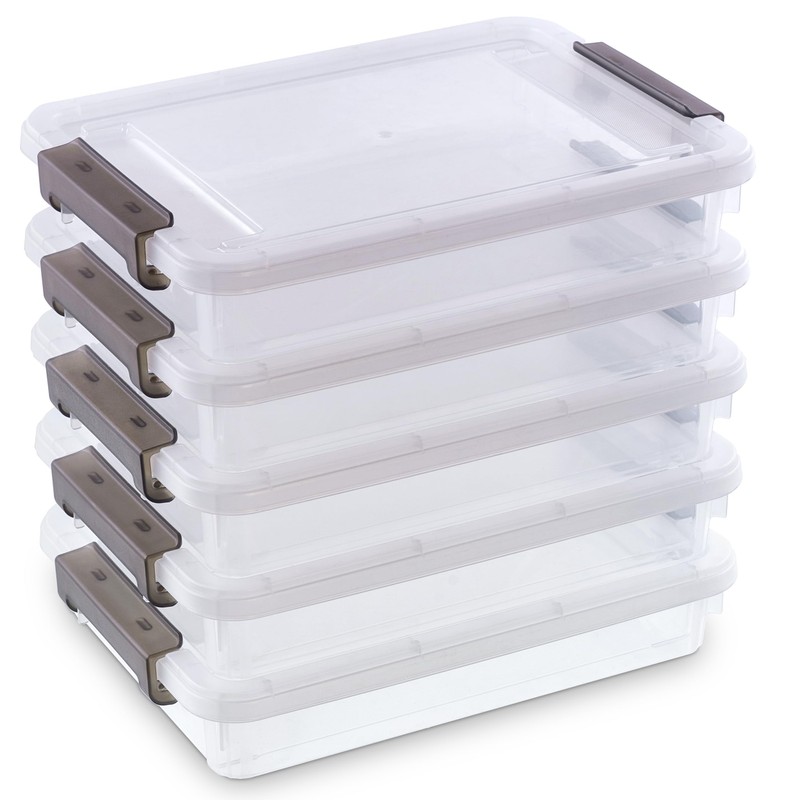 Bienvoun 5PCS Plastic Storage Bins with Lids Portable Project Case Water Resistant Plastic Containers for Organizing Document,A4 Paper,Photo,Letter,Scrapbook