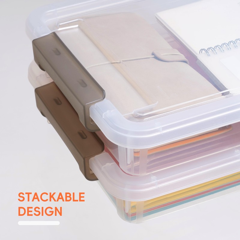 - SIZE: The plastic organizer box measures approximately 14.65'' x 10.43'' x 2.87'' with a 5 quart capacity, inner size 12.48'' × 8.98'' × 2.87'' perfect for protecting your photo greeting cards or important office documents. Each box is large enough to hold up to 550 sheets of A4 paper