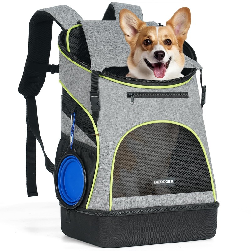 BIERPOER Dog Backpack Carrier for Small Dogs - Cat Backpack with Hard Bottom(Upgraded Sturdy EVA), Suitable for Hiking, Traveling and Camping, Max 17 lbs, Grey