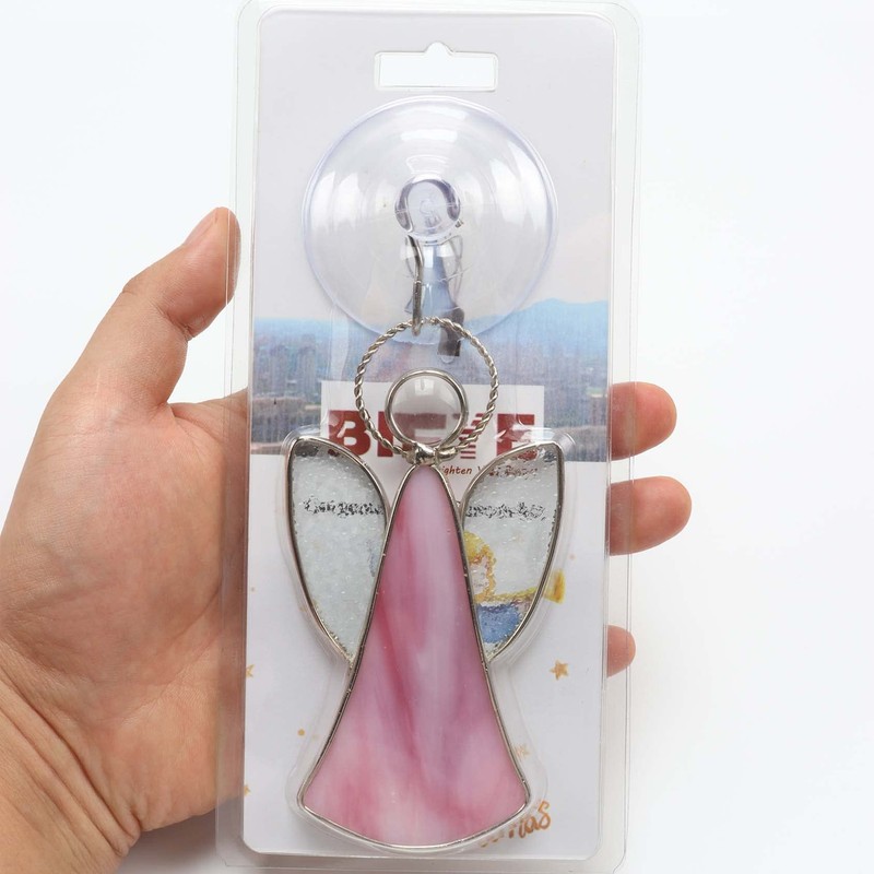 Bieye W10103 3PCS Tiffany Style Stained Glass Window Hangings for Home Decor (Angel)