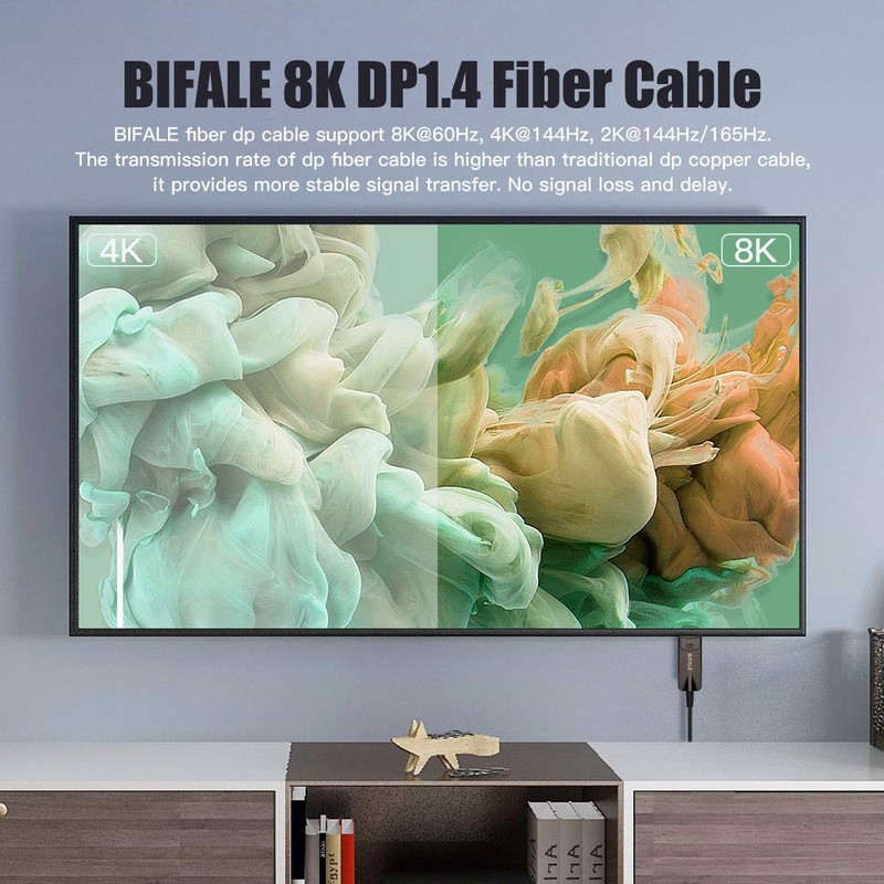 BIFALE's DP Fiber Optic Cable is good for video streaming or gaming. High stable (8K@60Hz, 4K@144Hz, 2K@144Hz/165Hz) refresh rate reduces flicker to give you a really comfortable gaming experience.