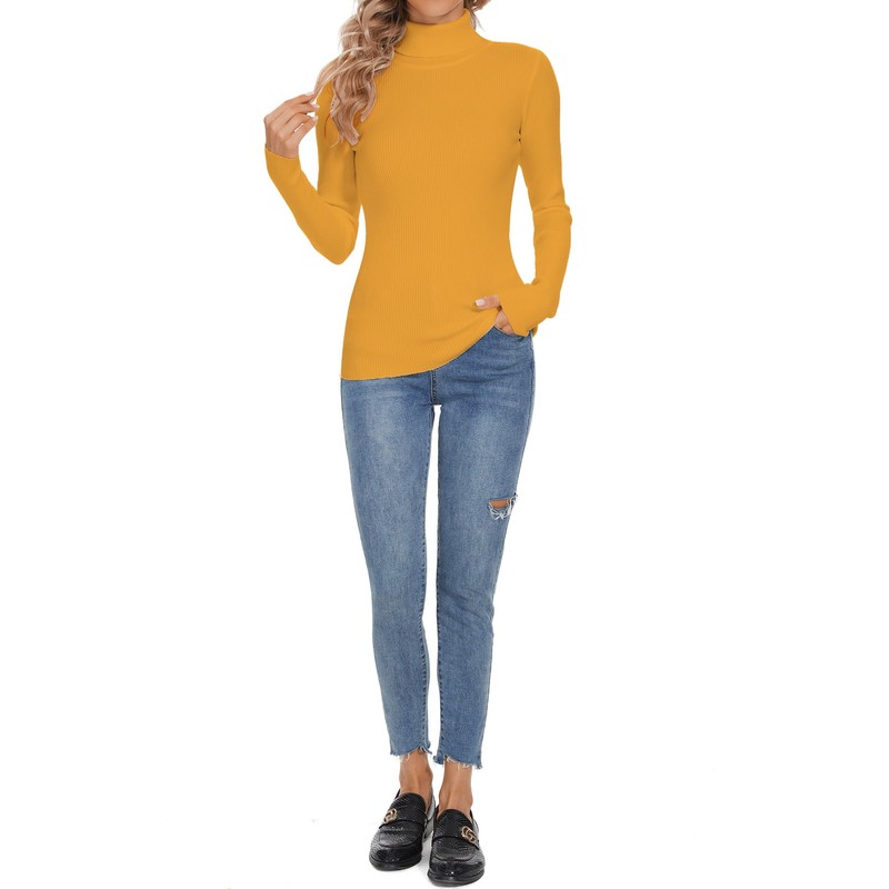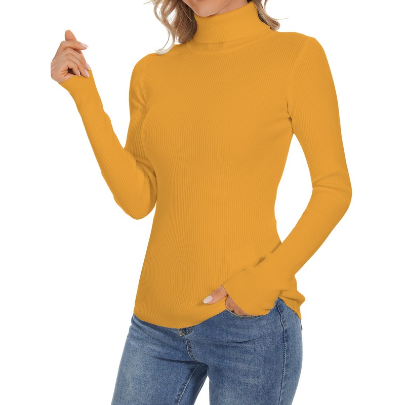 Biffxeu Yellow Turtleneck Sweaters for Women Ribbed Sweater Jumpers Knit Tops L