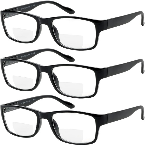 - VERSATILE & MULTIPURPOSE: These bifocal reading glasses are perfect for wearing when working at the office, using a PC, reading a book, driving a car, and more! Lens Width: 52mm, Bridge: 17mm, Arm:140mm.