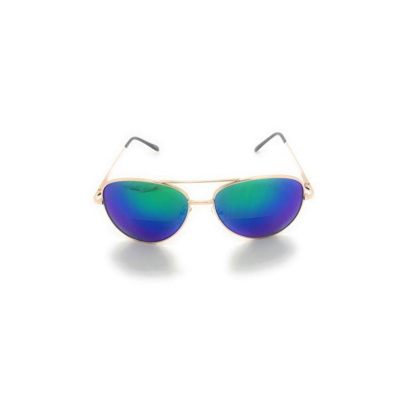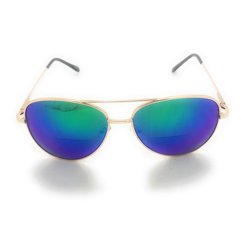 Bifocal Reading Sunglasses for Women or Men 100% UVA & UVB Aviator Mirrored Lens (Blue-Green, 1.50)
