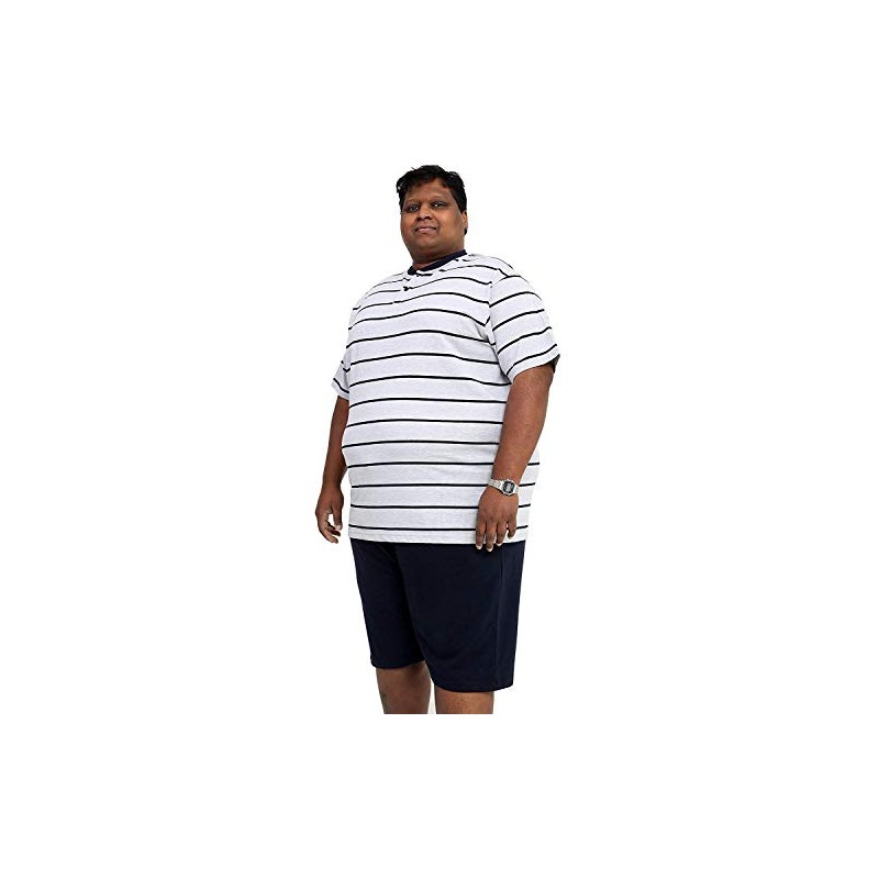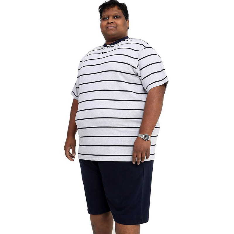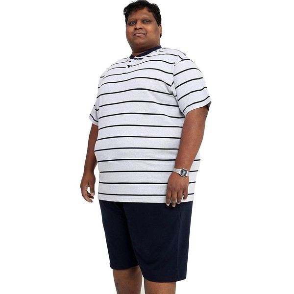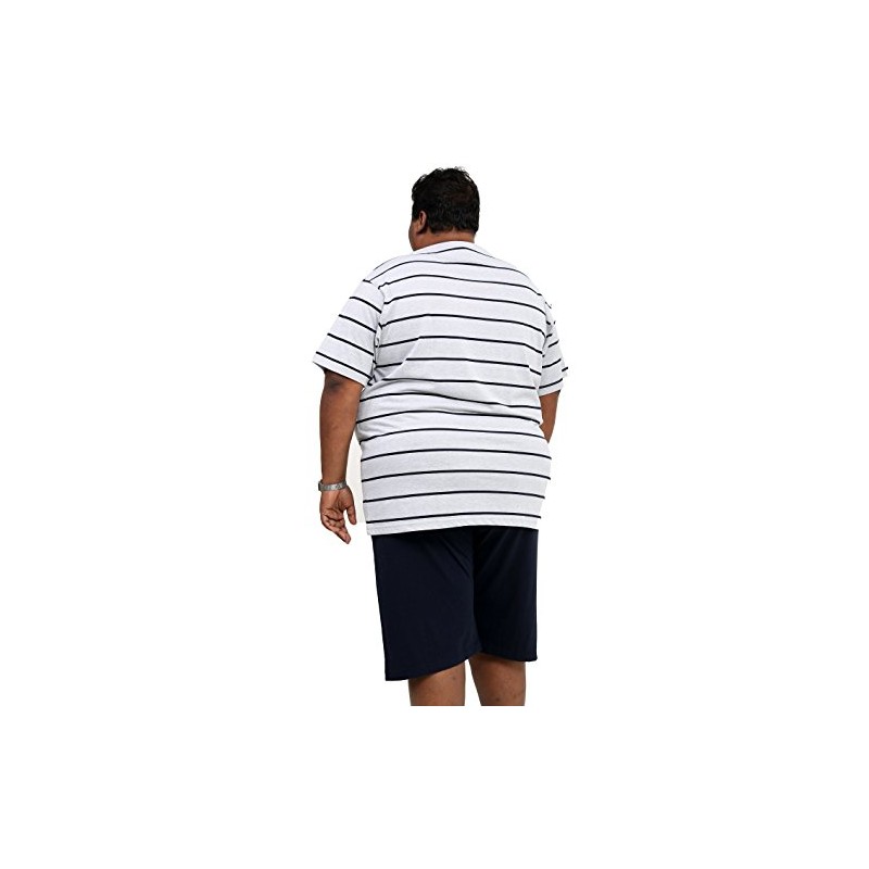 Big and Tall Size PJS Plain Pyjamas Set Plus Size Nightwear - Grey/Navy Stripe (4XL)