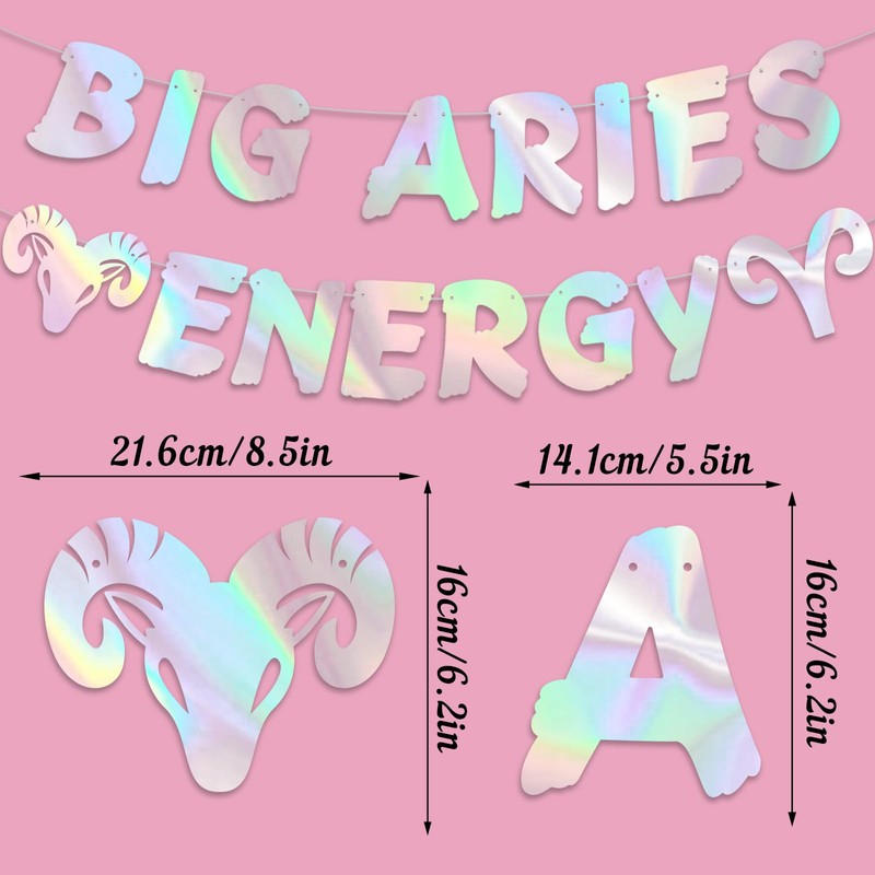- Big Aries Energy Banner: This banner with glitter letters is perfect for Aries Birthday Party Decoration. This banner is perfect decoration to add gladness and welcome your guests to your party. shiny banner consists of 2pcs banners, shiny color and beautiful design can decorate your party well