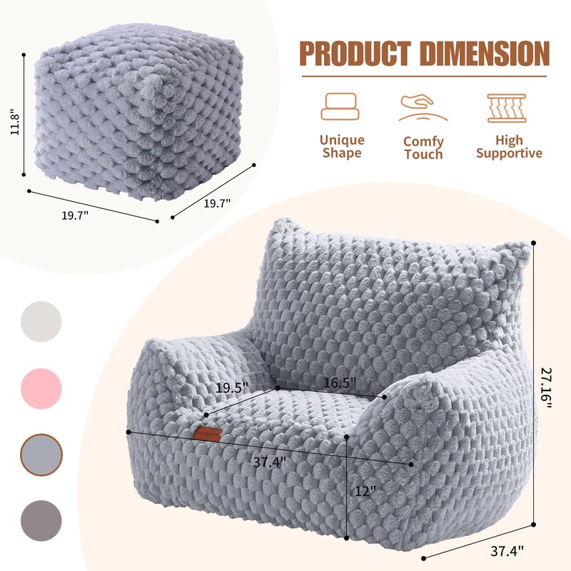 - Elegant and Ergonomic Design: The living room furniture is designed with delicate wrapped edges, giving the chair for room a lovely three-dimensional look. The ergonomic design of giant bean bag chairs for adults provides good support for the body and sitting posture. Wide backrest and armrests of chairs for bedrooms can support any body size and age