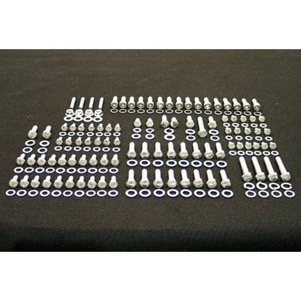 Dress Up Your Chevy 396 402 427 454 Engine with our 236 Piece stainless steel hex bolt kit!! This kit has a natural stainless finish. The bolts in this kit are made from 304 stainless steel. SEND A MESSAGE IF YOU HAVE AFTERMARKET COMPONENTS.