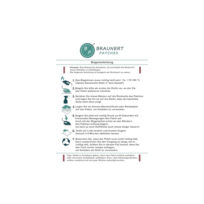 - *** Detailed ironing instructions are included with your order. If you have difficulty ironing, you can also easily sew the patches or attach them with a textile adhesive.