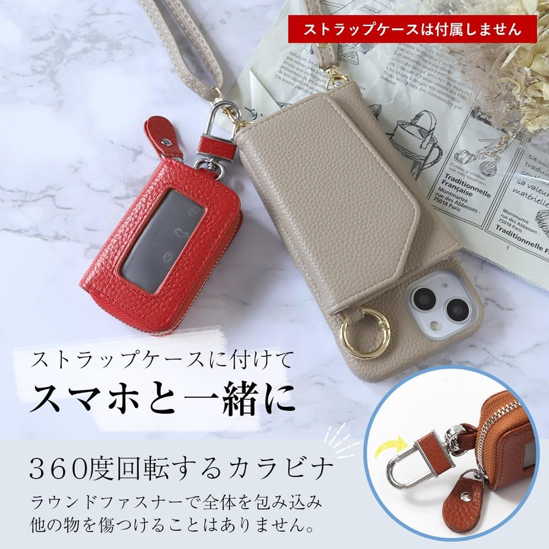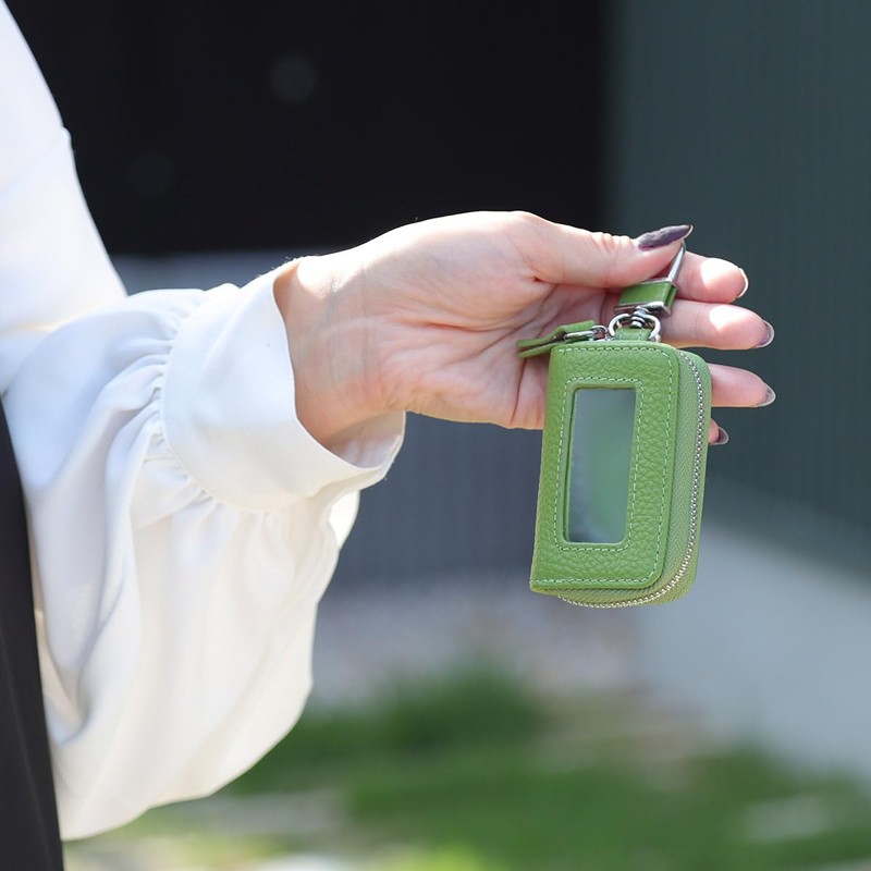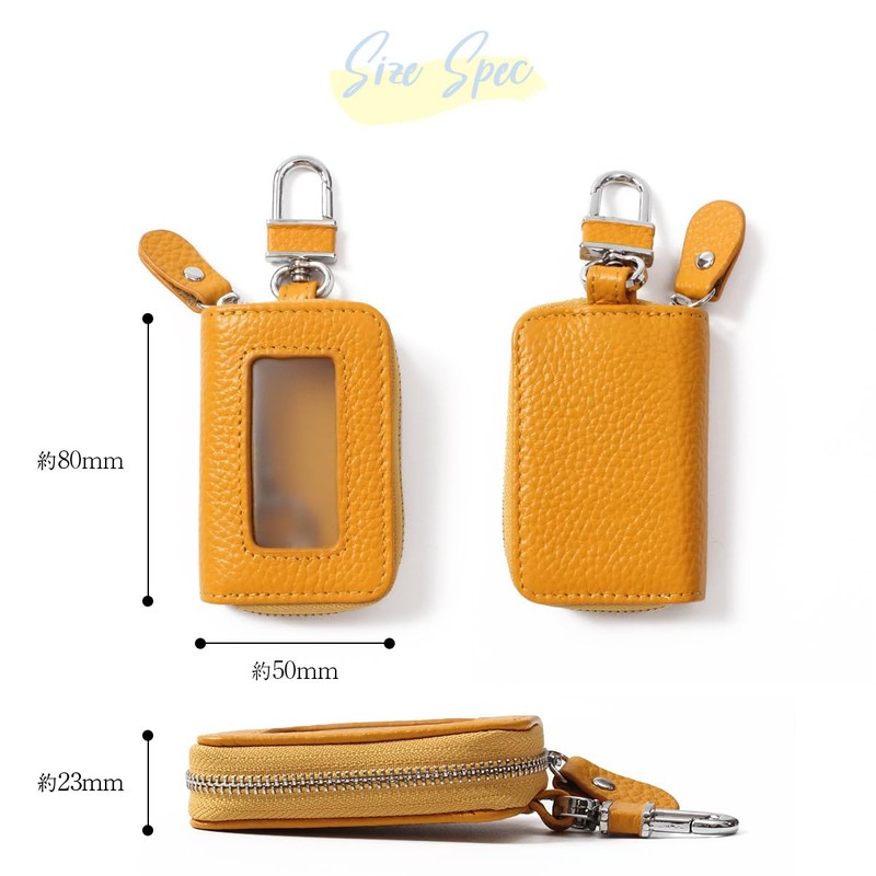 - [Leather Smart Key Case with Window] This key case is made of genuine leather with a shrunk, characterized by the grain texture. Soft and comfortable leather gives you a comfortable and satisfying feeling. It has a window so you can operate it while storing your keys