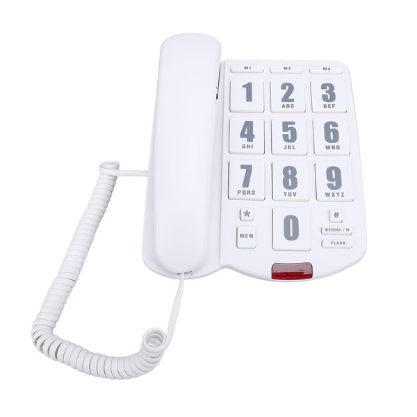 Big Buttons Phone for Elderly, Wall Mountable Corded Home Landline Telephone, Redial and Flashing Alert, 110dB+ Ringtone, Volume Control, M1 M2 Memory Buttons (White)