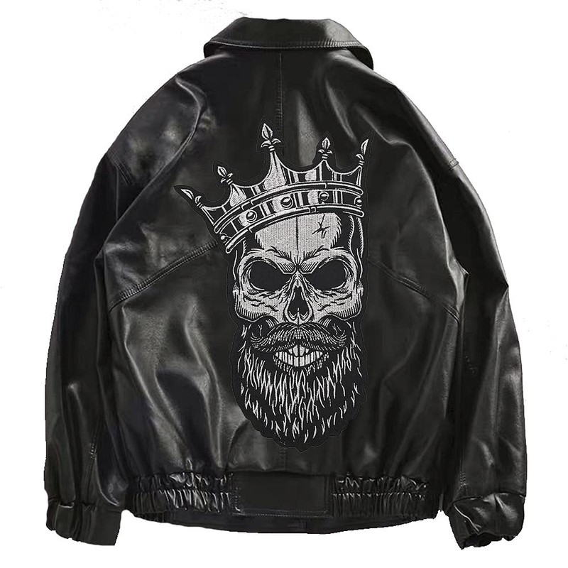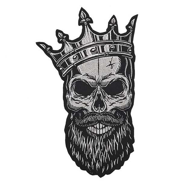 Big Crown Skull Embroidered Iron On Patch Motorcycle Racing Jacket Back Patch