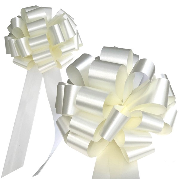 Big Decorative Ivory Ribbon Pull Bows with Long Tails - 9" Wide, Set of 6, Christmas, Wedding Decoration, Pew Bows, Reception, Anniversary, Dance, Fundraiser, Classroom, Office