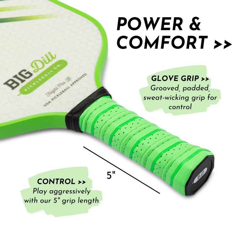 Big Dill Pickleball Flight Pro XL Fiberglass Elongated Professional Pickleball Paddle | USA Pickleball Approved Rough Fiberglass | Lightweight Pickle Ball Paddles for Women, Men, Advanced Racket