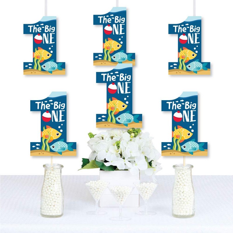 - DIY PARTY SUPPLIES: 1st Birthday Reeling in the Big One essentials include 20 large cut outs in one different number one shapes that coordinate with the baby 1st birthday party theme. Set of 20 one shapes SIZE measures 5" x 7". The unique design and large size makes these one party decorations an impressive addition to any first birthday party.