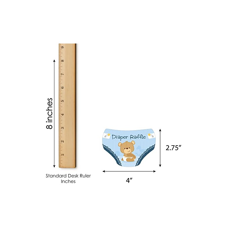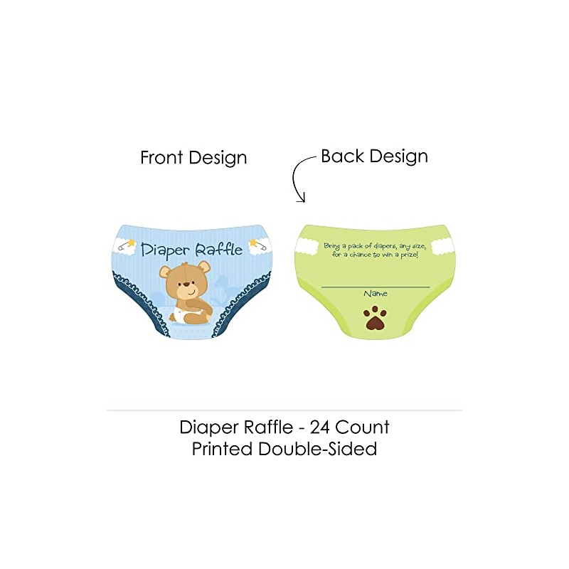- MADE IN THE USA: Baby Boy Teddy Bear - Diaper Shaped Raffle Ticket Inserts - Baby Shower Game is designed and manufactured at our Wisconsin facility using materials that are Made in the USA.