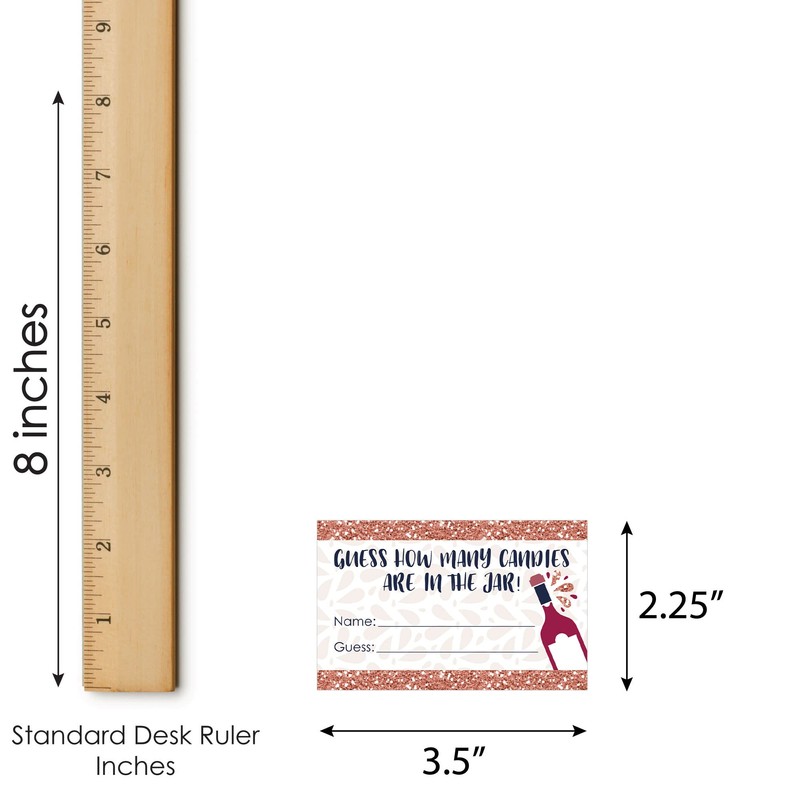 - But First, Wine Candy Guessing Game INCLUDES 1 sign with a built-in stand and 40 guessing cards that will look great at your Wine Tasting Party. Sign measures 7.5” wide by 11” tall and cards measure 3.5” by 2.25” tall. Candy and jar are not included.