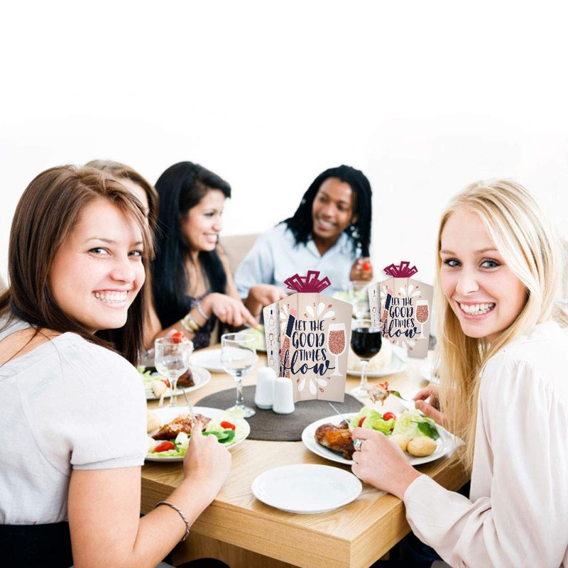 - HIGH-QUALITY PARTY SUPPLIES: But First, Wine fold and flare centerpieces are professionally printed double-sided on sturdy cardstock paper with a photo-like shine. They are individually inspected and carefully packaged by hand. Fold and flare centerpieces will arrive flat, with easy folding required for quick assembly.