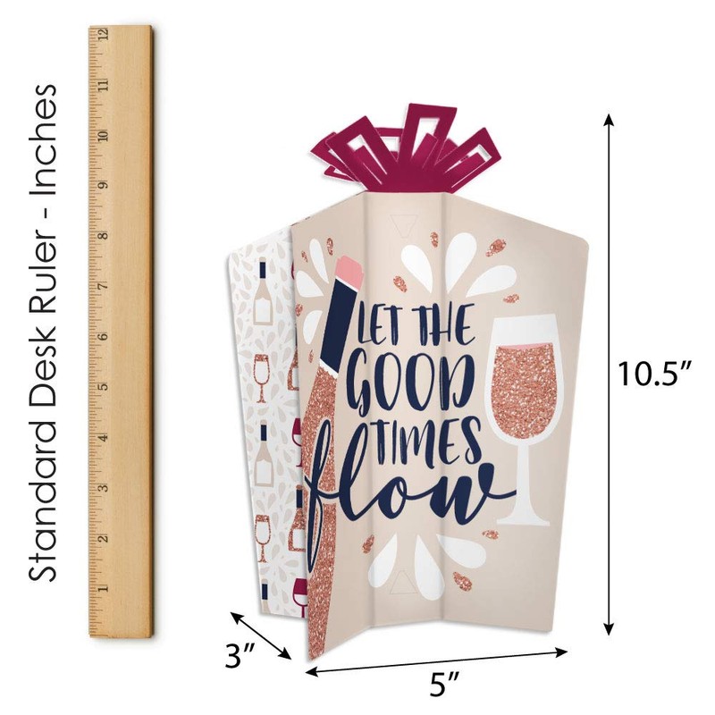 - EASY TABLE DECOR: Each But First, Wine centerpiece SIZE 5 inches wide (front/back) x 3 inches wide (sides) x 10.5 inches tall. This 10 count table decorations set requires easy folding to flare out each centerpiece at your desired look. Easy DIY folding assembly: Use a flat surface to fold along the scored creases to stand the centerpiece upright and be able to balance on its own.