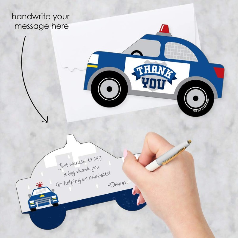 Big Dot of Happiness Calling All Units - Police - Shaped Thank You Cards - Cop Birthday Party or Baby Shower Thank You Note Cards with Envelopes - Set of 12