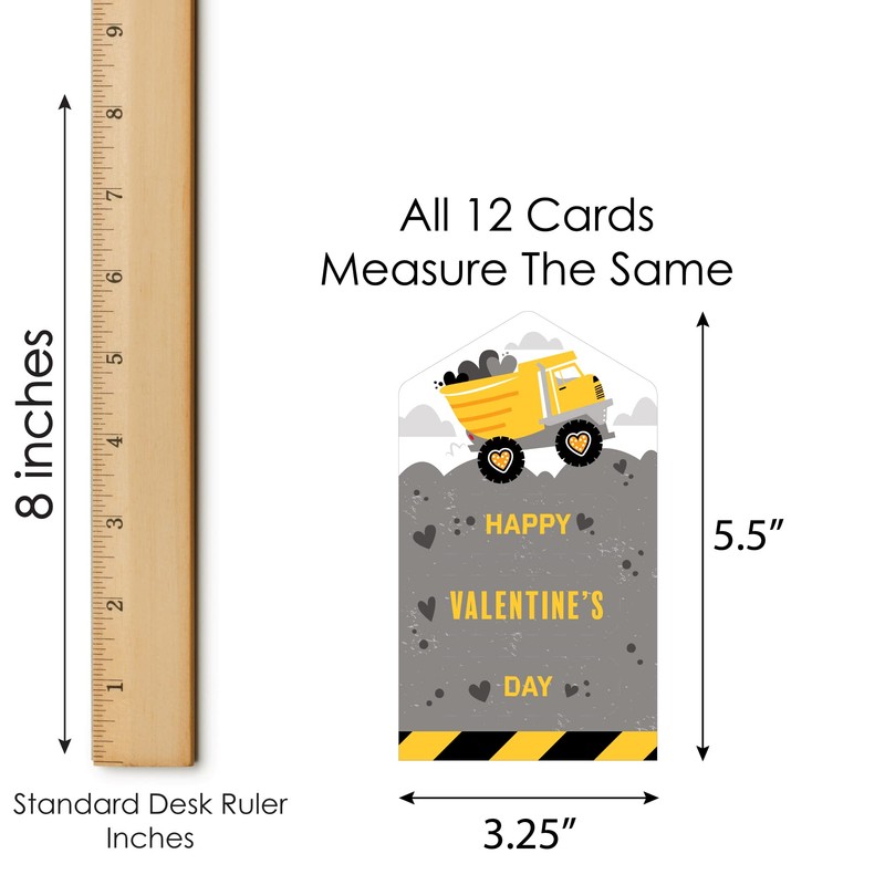 Big Dot of Happiness Dig It - Construction Party Zone - Dump Truck Cards for Kids - Happy Valentine’s Day Pull Tabs - Set of 12