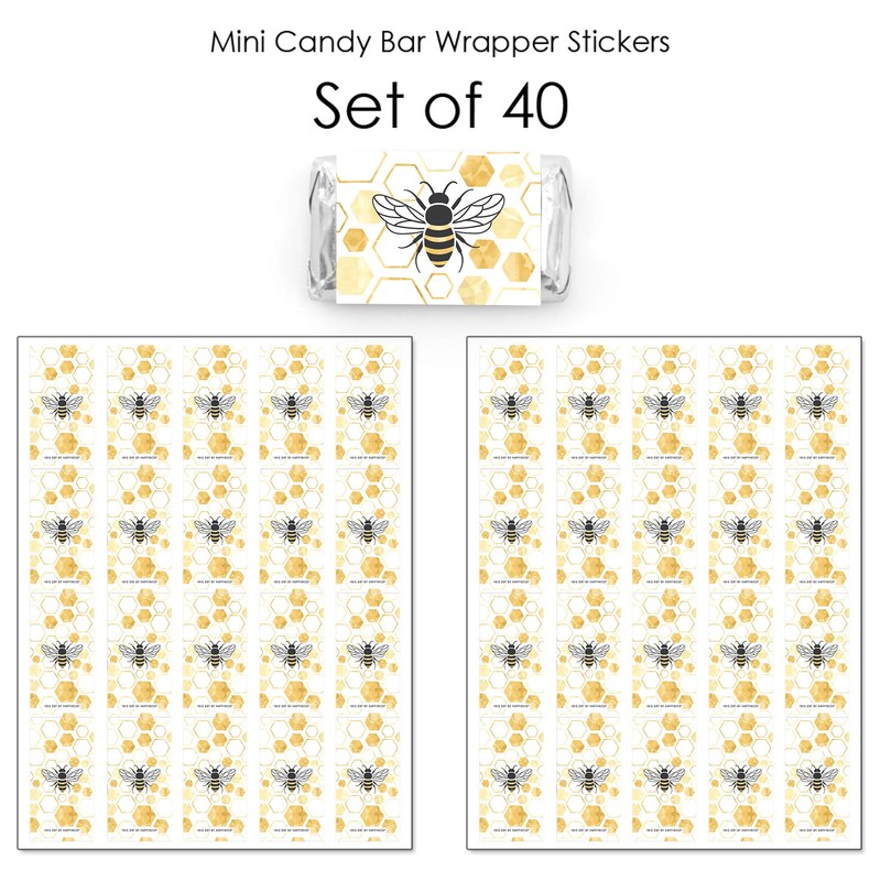 - Little Bumblebee Mini Candy Bar Wrappers INCLUDES 40 candy stickers, perfect for styling an adorable honey bee candy buffet or unique baby shower or birthday party favors.